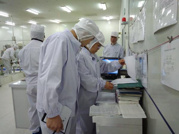 審查小組現(xiàn)場分別審查了生產(chǎn)車間、微生物實驗室、檢測中心、倉庫、空氣凈化系統(tǒng),查閱了工藝規(guī)程、質(zhì)量標(biāo)準(zhǔn)、批生產(chǎn)記錄、批檢驗記錄、環(huán)境及工藝用水檢測記錄、人員培訓(xùn)記錄等,并與有關(guān)人員進行了交流。